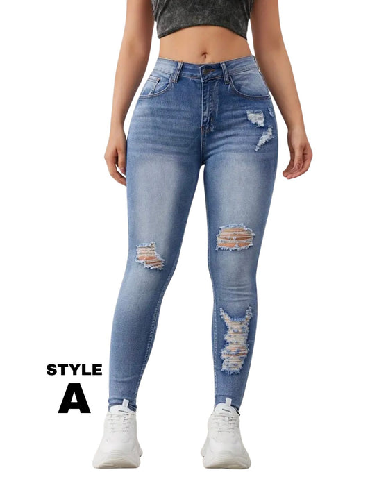 Ripped Holes Skinny Jeans, High Rise, Slim Fit Stretchy Tight Jeans, Women's Denim Jeans & Clothing