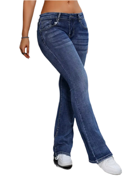Long Length Flared Jeans - Soft Denim, Comfortable Trendy All Season Fashion, Casual Street Style, 90s Womenswear