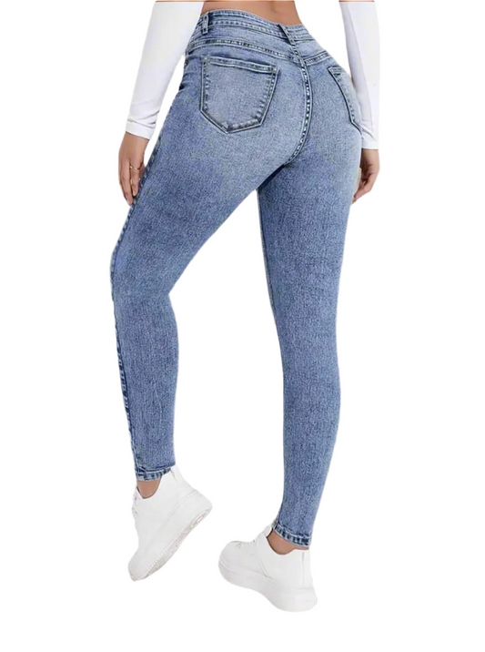 Slim Fit Mid Rise Washed Skinny Jeans, High Stretch Slant Pockets Casual Tight Jeans, Women's Denim Jeans & Clothing