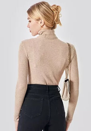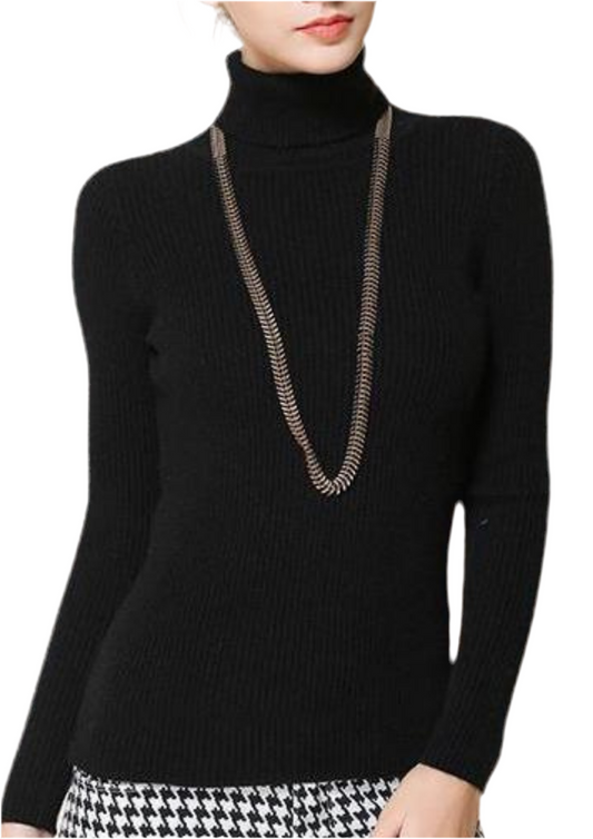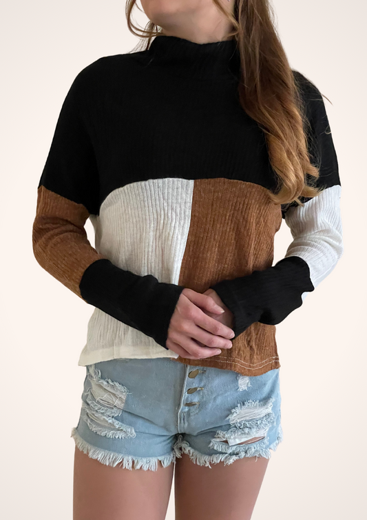 Lightweight Black and Brown Color Blocked Turtleneck Pullover Sweater