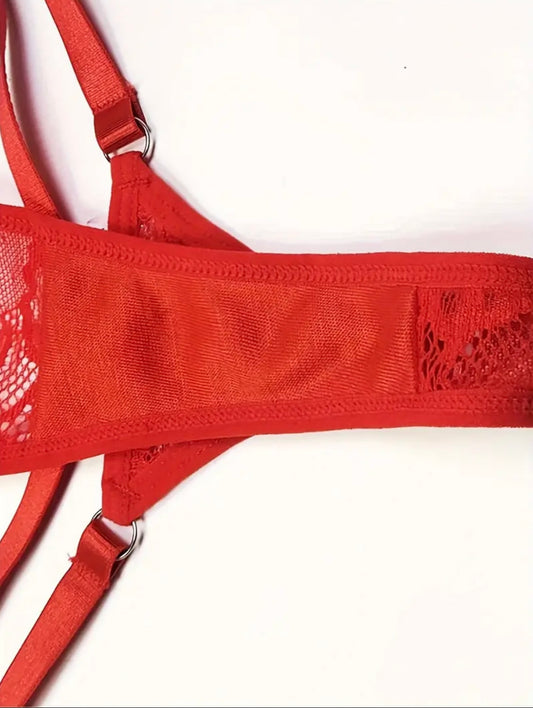 Sexy Sheer Open Front Lace Babydoll and G-String Lingerie Set in Red