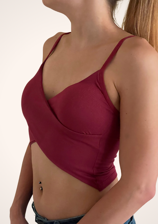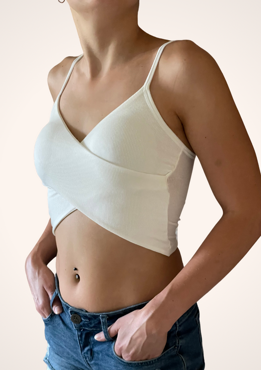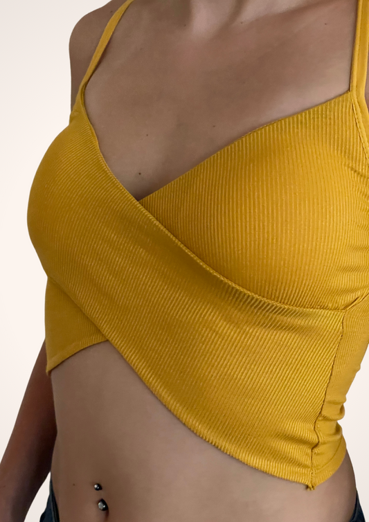 Cross Wrap Padded Camisole Crop Top in Yellow