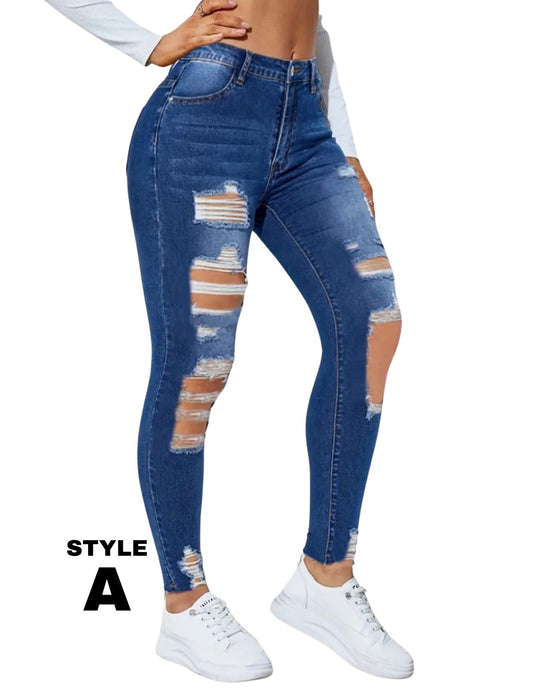 Ripped Distressed Skinny Jeans, High Rise, Slim Fit Stretchy Tight Jeans, Women's Denim Jeans & Clothing