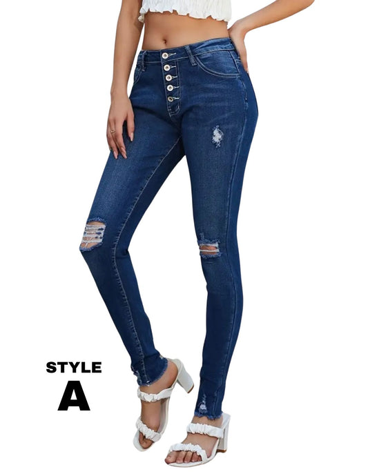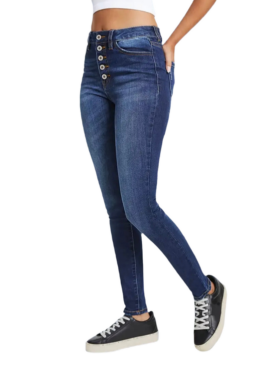 Women's Skinny Premium Denim Jeans with Multi-Button Fly - High Stretch, Comfortable, Pre Fall 90s Womenswear