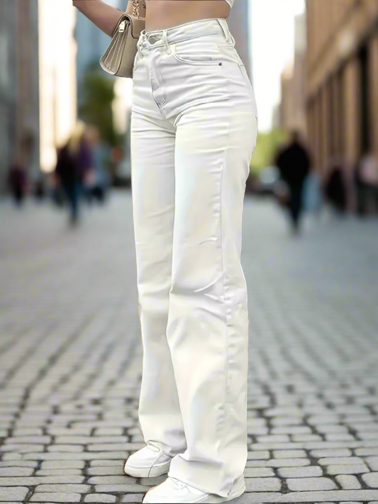 High-Waisted Classic Off White Wide Leg Jeans - Soft Slight Stretch, Flared Bottoms, Versatile Casual Style Everyday Wear, 90s