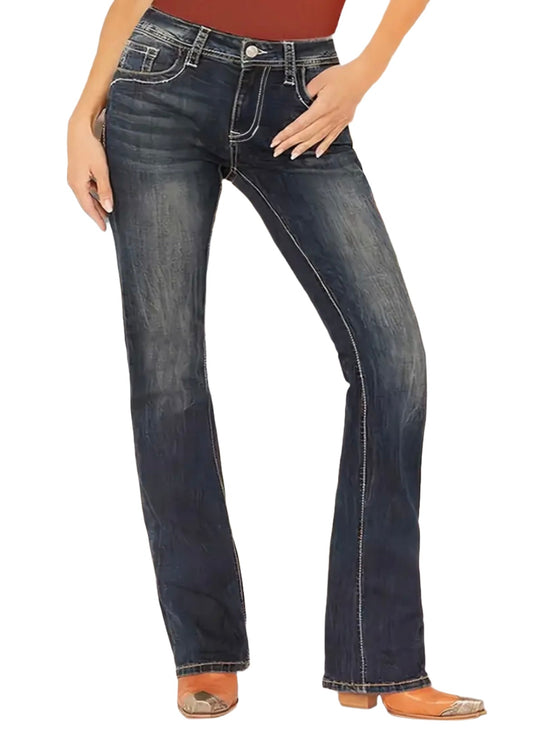 Low Rise Skinny Bootcut Jeans in Dark Blue Denim