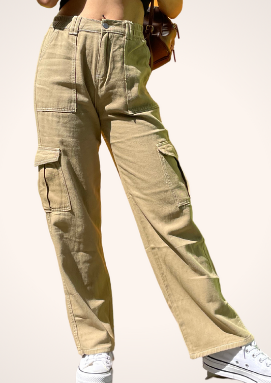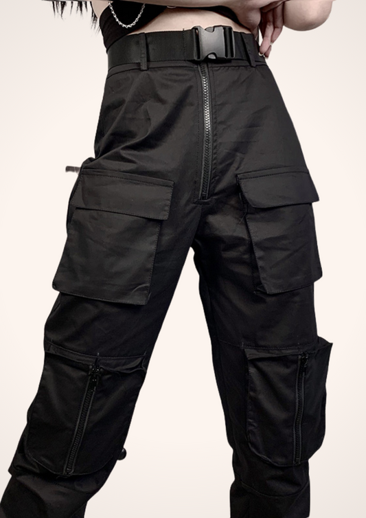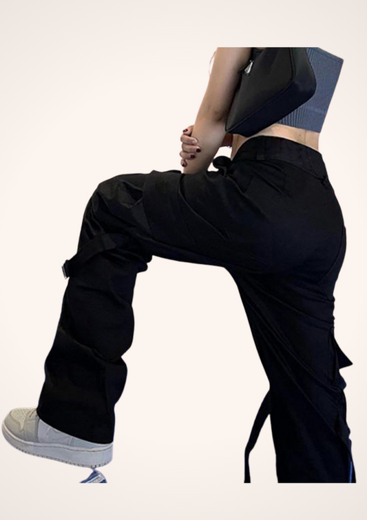 High Waist Loose Fit Harem Cargo Pants with Elastic Ankles in Black