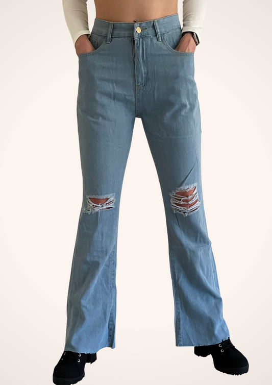 Long Length Flared Jeans - Soft Denim, Comfortable Trendy All Season Fashion, Casual Street Style, 90s Womenswear