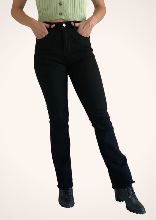 Elegant High-Waisted Black Denim Jeans for Women - Solid Black Color, Tight Fit, High Stretch Fabric, Woven, Button Detail, All-Season Wear