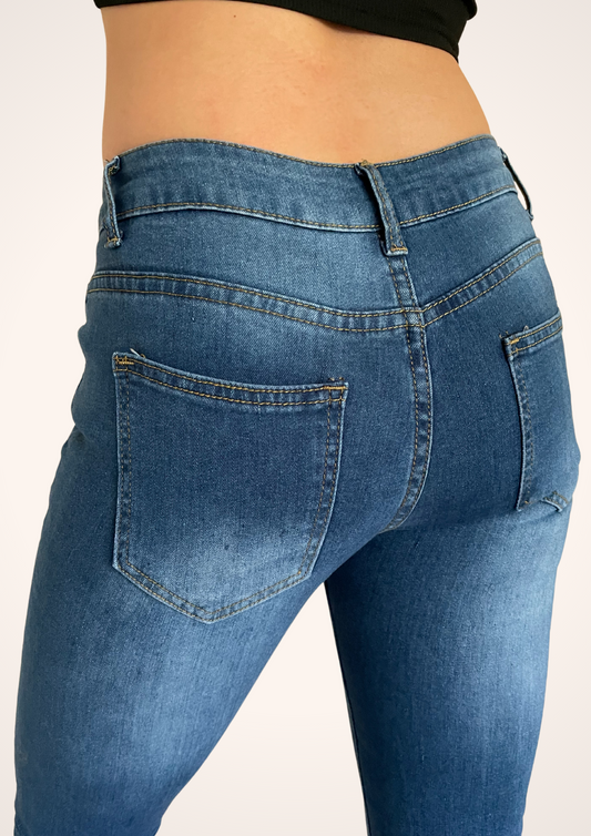 High Waisted Distressed Boyfriend Fit Blue Jeans