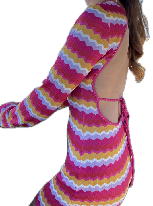 Forever Fun Y2K Long Sleeve Open Back Dress in Pink