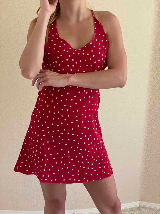 CLEARANCE! Women's Red Fashion Sleeveless Polka Dot V-Neck Dress Cami Mini Backless