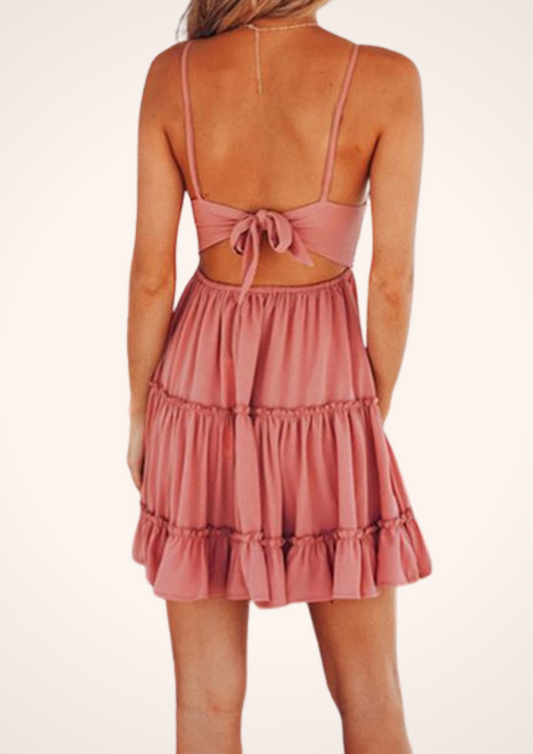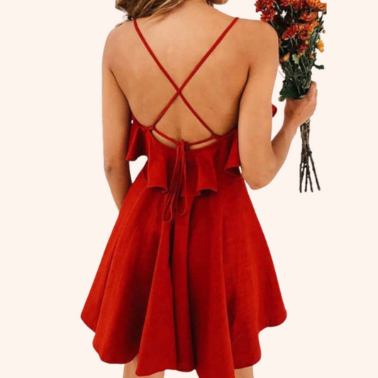 Roses are Red Cross Back Ruffles V Neck Mini Dress