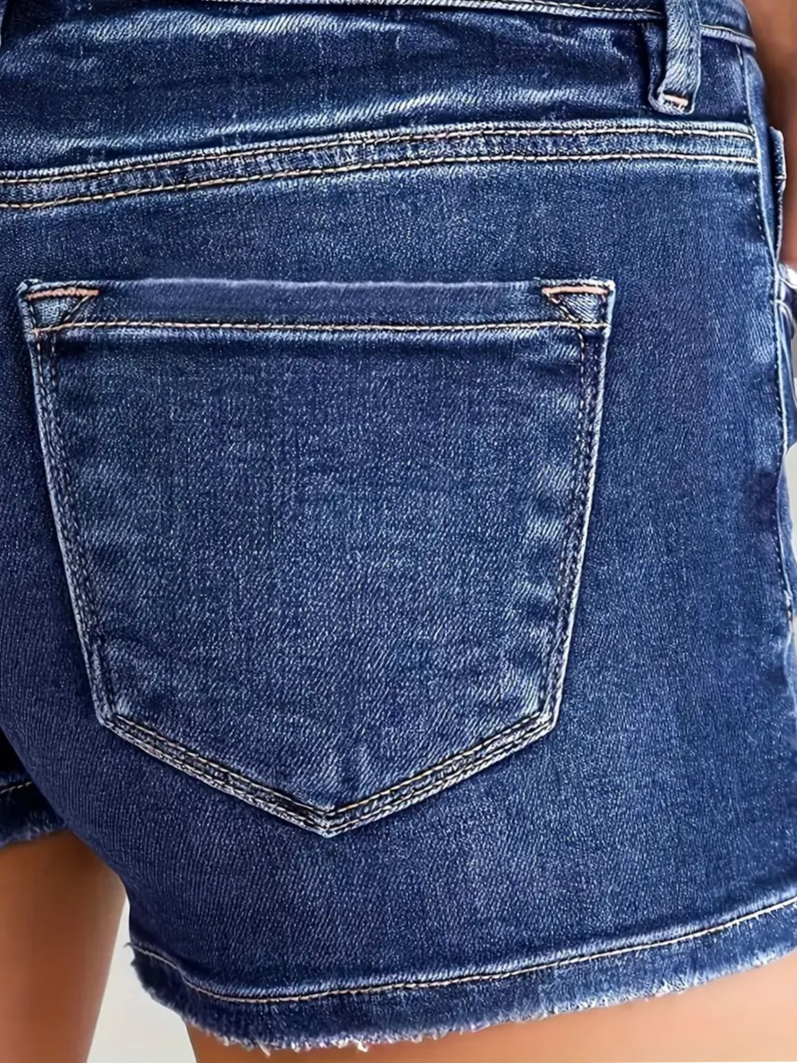 These High Waist denim shorts with an inseam of just 1.8 inches and a length of 11.2 inch to 12.3 inches, it's just perfectly short and sexy. It's stretchy, comfortable, versatile and super flattering to the behind. With beautiful stitching and just a tad of distress look, you get detail with a touch of ripped material.